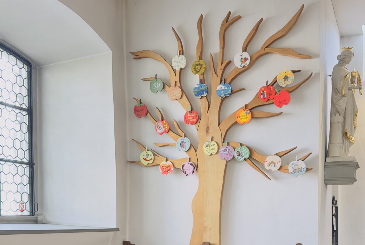 In Triengen erhalten die Kinder ihre liebevoll verzierten Holzäpfel zurück, in Winikon die bunt bemalten Schmetterlinge – beide waren während des Jahres an den Taufbäumen in den Kirchen zu bestaunen.